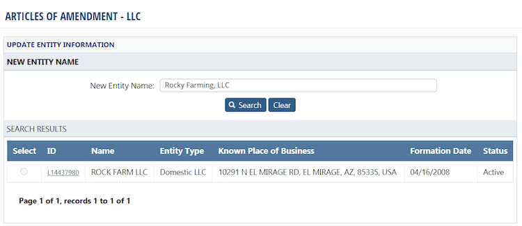 Before filing your amendment form (the Articles of Amendment), you should check that your new LLC name is available in Arizona.