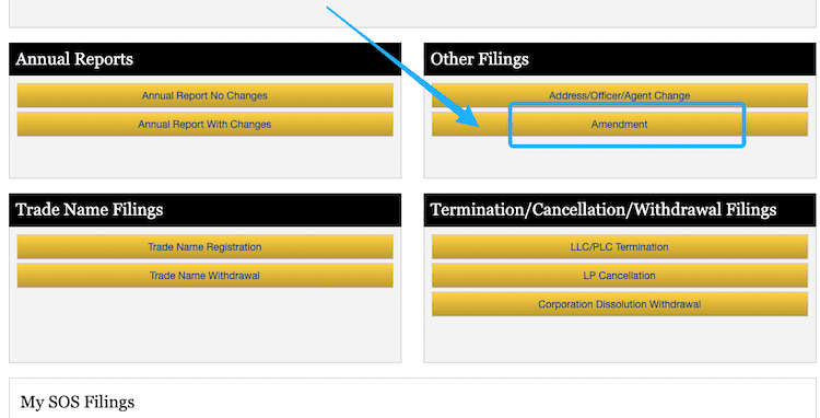 We provide step-by-step instructions on how to file the Amendment online. (Technically, you can also file by mail. However, it’s slower and the state prefers online filings.)