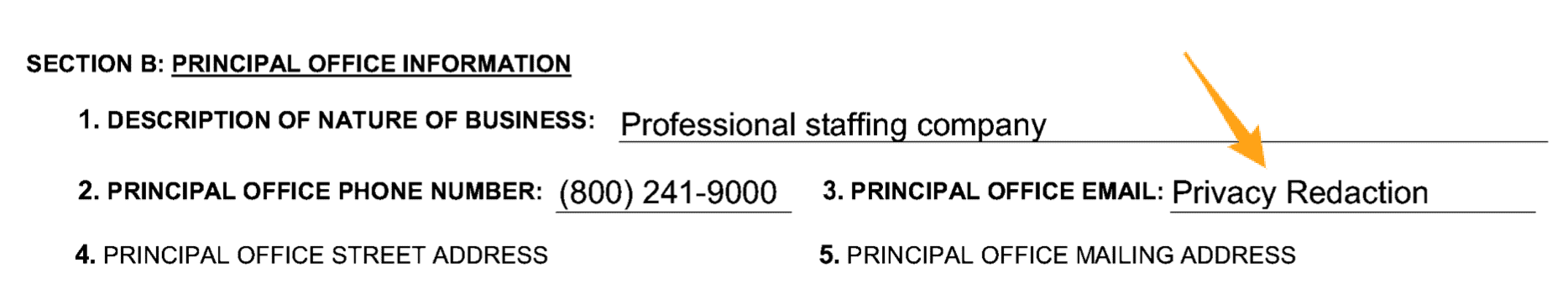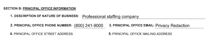 We recommend entering an email address here. This information will not go on public record. The state keeps it private. It’ll look like this on your filed report: